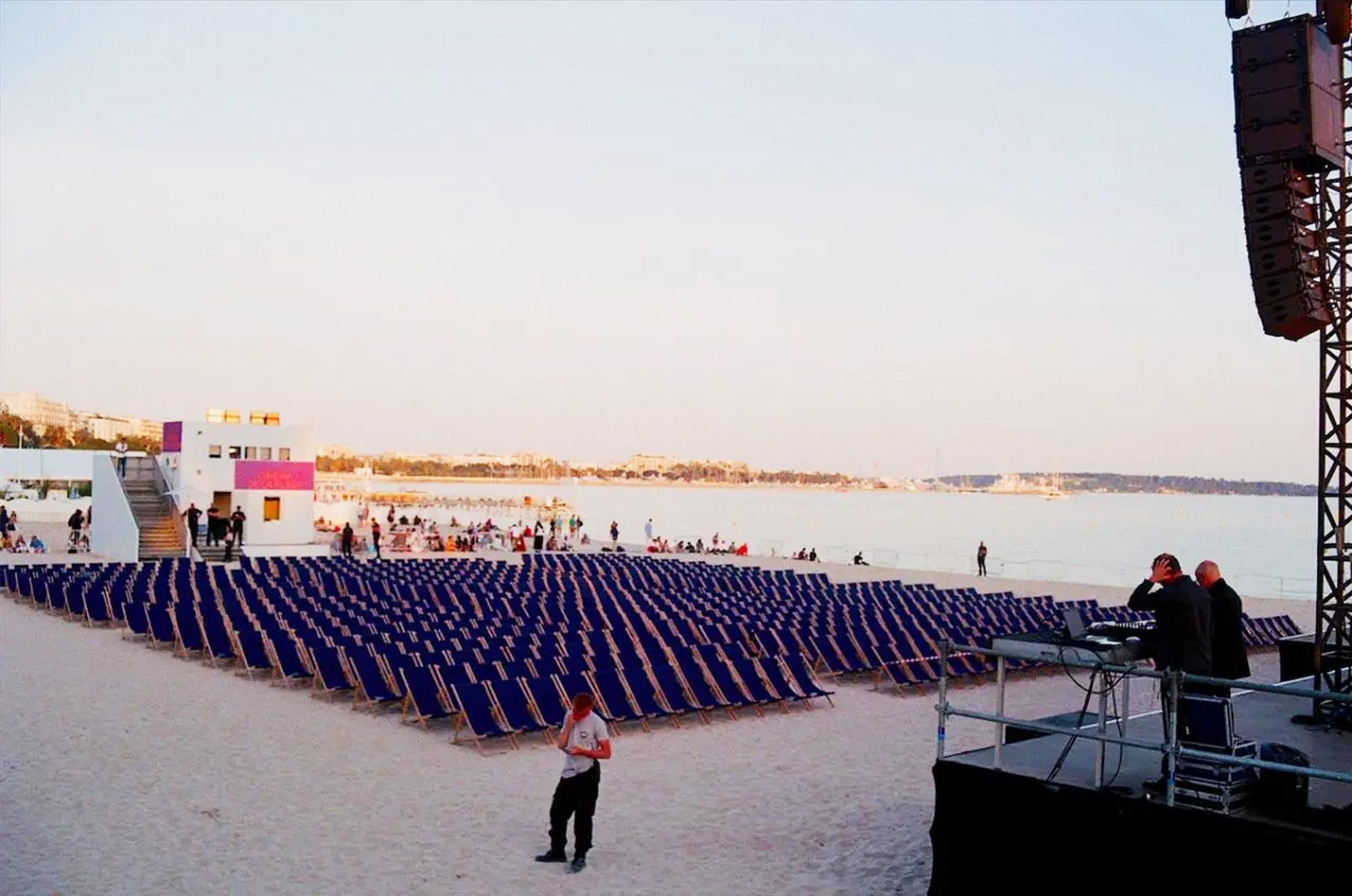 A couple nights later, my contingent of festival friends seems tapped out. It’s fun being in a Whatsapp group-chat with thirtysomethings, all texting for party details like freshman at orientation, until the moment arrives when no one actually has a line on an event. In desperation, someone suggests a last stand at the Campari Plage — an elaborate, bedecked private beachfront sponsored by the bright-red digestif. Convening there, we find a crowd of people swarming an impenetrable façade. Bright, clubby music bounces out from behind a mountain-like man, who explains that absolutely no one is getting in. The bouncer is Italian, which means he’s not even susceptible to Chantal maneuvering favors in rapid Franglish — typically, our failsafe for every point of entry. Our wave of revelry seems to crash on the rock of this man. Like addicts searching for a fix, we weasel our way down onto the neighboring beach, which is occupied by a restaurant that’s closing for the night. The host suggests we can stay for one last drink at the bar, where we can at least look upon the Campari-colored walpurgisnacht of hedonism next door.