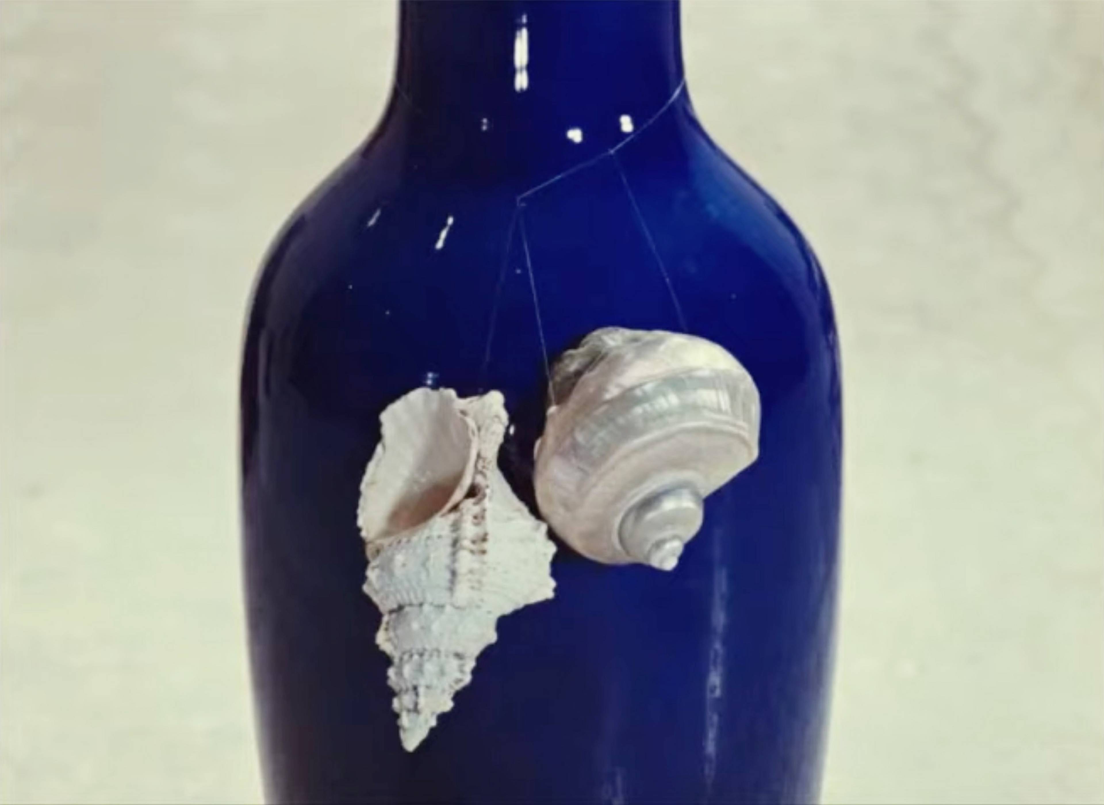 Following a voluptuous chikhirtma (chicken soup), we visited Florian Meisenberg’s show at the grungy and domestically gracious curatorial project E.A. Shared Space. The exhibition is a game of dupes and illusions both textured and evanescent, weaving together a painted adaptation of Yukio Mishima’s novel Confessions of a Mask (1949); dried vegetables entangled in plastic lace; furtive images like stray dogs on disintegrated screens; and a vanity placed on the floor.