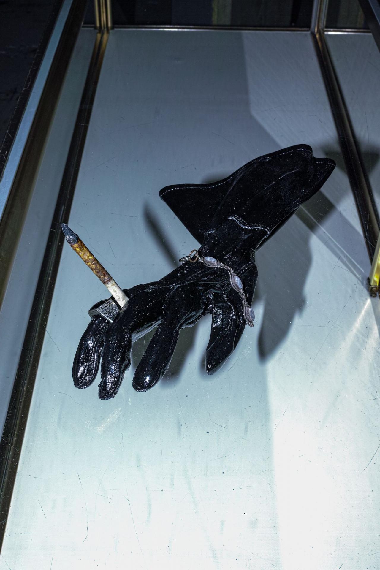 Tobias Spichtig makes art that simultaneously haunts and charms. The man himself is similar, with a dark, goth aesthetic that cloaks an incredibly sweet nature. The first week of September 2021, I arrived at Swiss Institute while Tobias was installing his first institutional solo exhibition in the US, “Good OK Great Fantastic Perfect Grand Thank You”. I surveyed the large room filled with antique vitrines from department stores, intricate abstract paintings and grotesquely thin mannequin-like sculptures modelling resin coated garments. In the mirrored walls, these artworks were reflected and refracted in infinite, nebulous amalgams. The emptiness of the exhibition stayed with me. Later, I read about Yves Klein’s 1958 exhibition titled “The Void”, which also featured an empty vitrine. Klein, invoking Eugène Delacroix, said about the exhibition: “I sought to create an ambience, a pictorial climate that is invisible but present, in the spirit of what Delacroix referred to as the indefinable, which he considered to be the very essence of painting”. Carl Jung said everything known and empty is filled with psychological projection. Visiting the show again after the mayhem of Paris Fashion Week, I recognized what was mirrored back in the void. It was my own darkness.