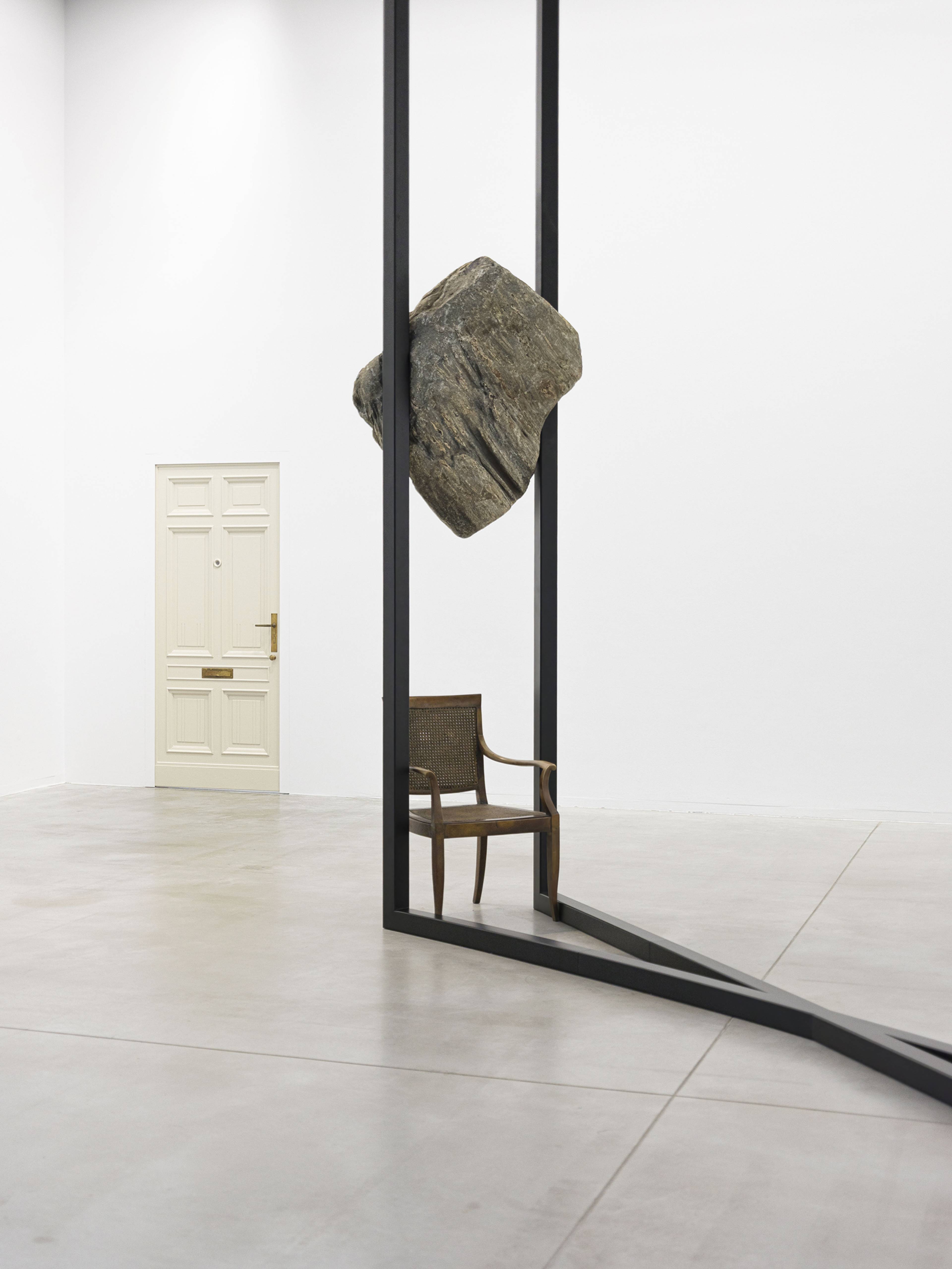 MS: During your tour of the exhibition, you mentioned how visitors tend to avoid certain pieces instinctively, almost superstitiously – like ParaPosition (2024), a large-scale installation with huge stones looming above and a chair beneath. It reminded me of walking under a ladder – of bad luck, but also an actual risk. Do you consciously play with that tension between magic and physical danger?