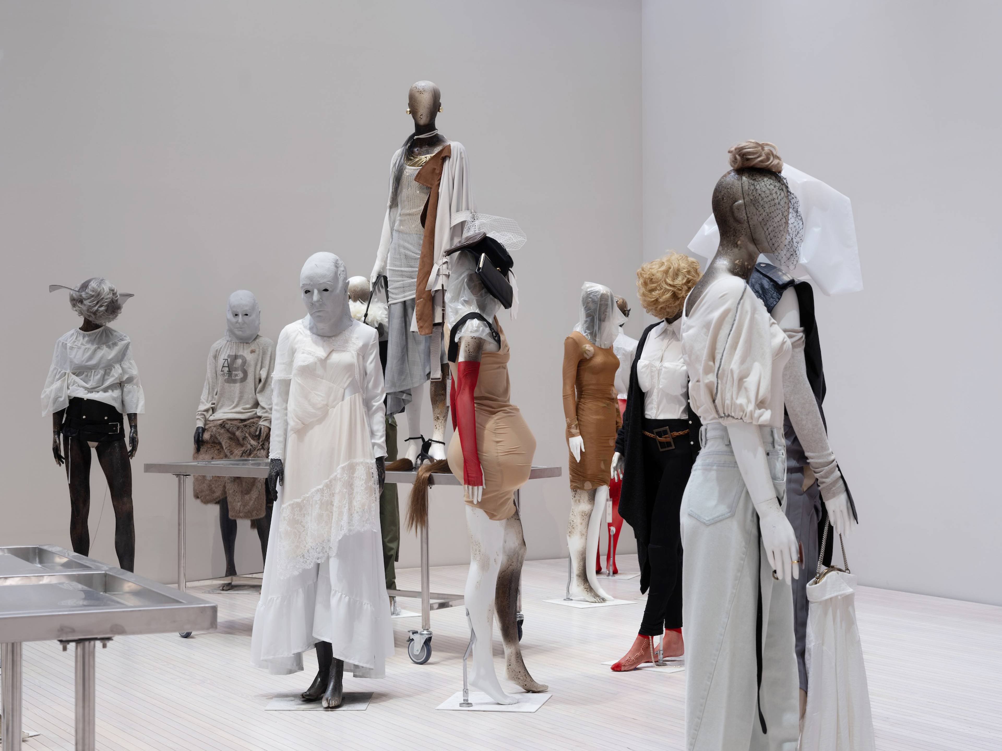 With a name more well known in London or Paris than in her native Stockholm, Back has sought to quite literally bury her own career as a fashion designer in a monographic exhibition at Liljevalchs. “Go As You Please,” which lifelessly presents celebrated archival pieces spanning 1998 to 2018 in satin-lined coffins or affixed to a sea of singed, faceless mannequins, is a tongue-in-cheek middle-finger to the industry that made her famous – and the city she once rejected. Object labels are presented as garment tags, fashioned as obituaries. At the exhibition’s vernissage, attendees – including a raft of fashion-world heavyweights – were handed white flowers to lay on the gallery floors.