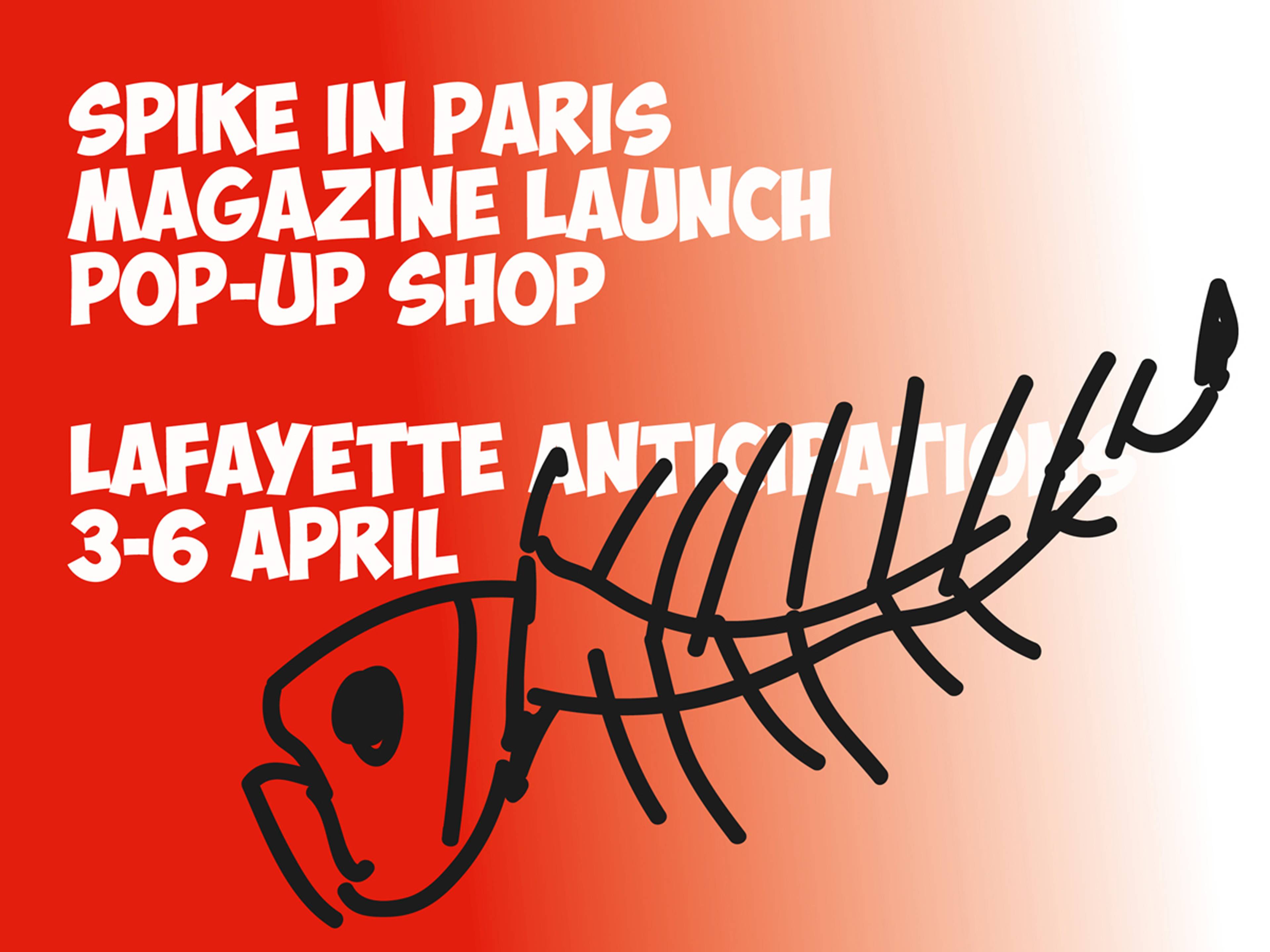 Paris! Join us next Thursday, 3 Apr, for a soirée at Lafayette Anticipations. We’ll be launching Spike #83 – Food; a line of fresh merch; and, alongside his newly opened exhibition, a new limited edition by Mark Leckey. Four-day pop-up at La Librairie to follow.
