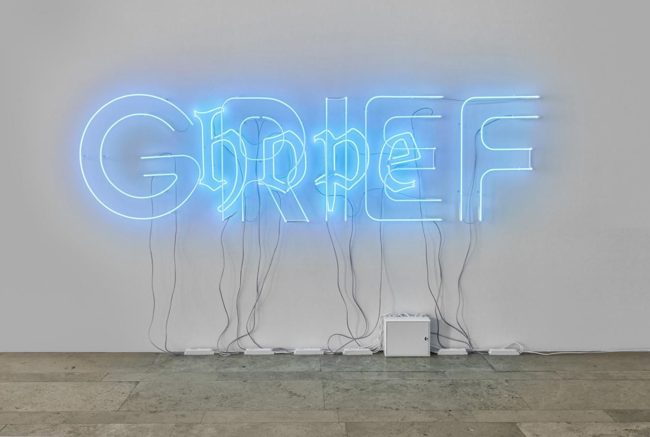 The early 20th-century paintings of Charles Burchfield, who lived near but seldom depicted Niagara Falls, dealt copiously with landscape temperature and mysticism, embowing symbols and hidden meanings in images of the local environment. The narrative logic at play in “Drink the Wild Air,” whose title derives from a poem by the transcendentalist Ralph Waldo Emerson, “Merlin’s Song” (1867), is similar: Whether drenched in Flashe or signed in neon, what’s at stake here is documentation: writing down the forms, textures, and colors of climate loss, both as a shared responsibility and as a personal testimony, through the capacious scope of art. The metrics of truth, the means of knowing and declaring, are held at bay and seem to unveil their operative logic. A wash of grief and a glimmer of hope in the face of slow collapse are experiences that both artists allow into the show space. Their works read as meticulous syllables of a poetry politically charged: an attempt to picture the precarity of nature and the resilience of beauty as it enters the systems and mechanisms of art and its institutions.