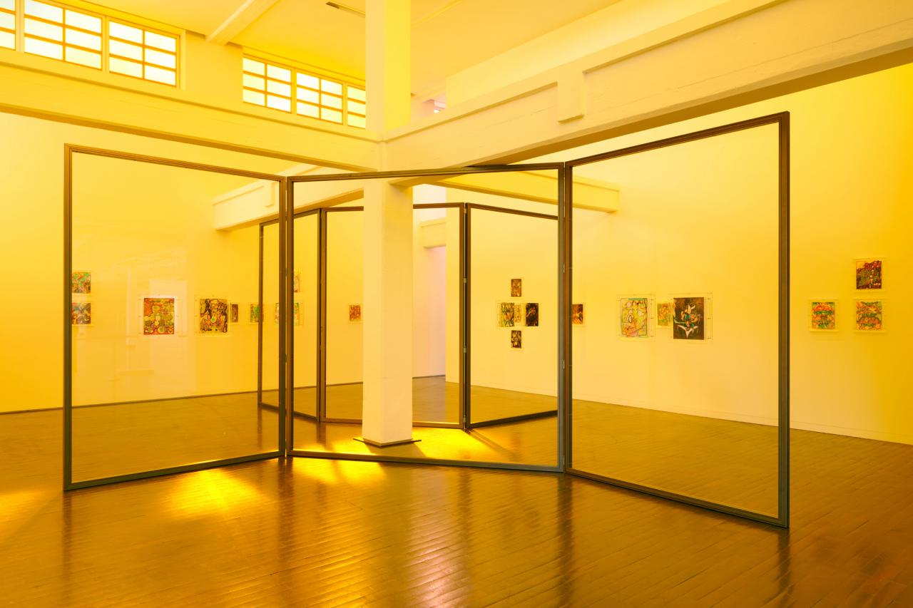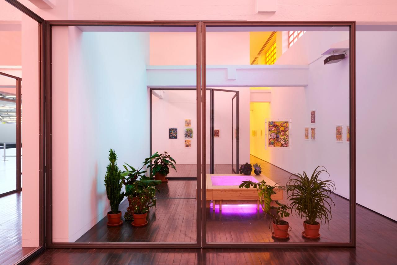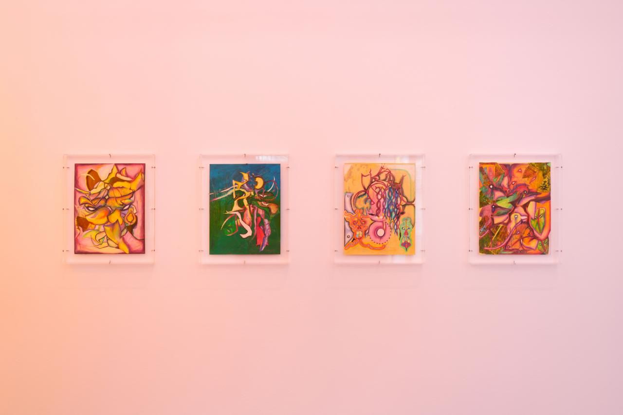 The attributes of the goddess probably amount to a guide through the exhibition in Aachen: The push toward such a founding and elusive historical center of gravity, the idea of initiation and rebirth, and the projection through the future of divinatory practices are vectors that do not lead to any conciliatory solution. The dense, dreamlike landscapes are not allegories that produce a narrative, but together form an ineloquent self-contained world. What matters is the challenge to the hierarchical gaze, to a verbally transferable “meaning,” to polarizations between process and artwork, spontaneity and intention, abstraction and figuration, the individual and the serial, and arts and crafts. “Die Sein” is an exhibition set up to induce circular wanderings among works collected in small groups, in search of assonances scattered among different environments – including a corner where one can sit near a fountain surrounded by plants and listen to a slow, meditative composition by Wibke Tiarks. It feels like the “being there” that partially lends the exhibition its title – distorting the well-known Heideggerian concept of “Dasein” in a womanly and individuating key, “die” being the German feminine determinative article – likewise reflects the one hundred works’ long, simultaneous productions and the experience of visitors shuffling the cards before the journey begins.