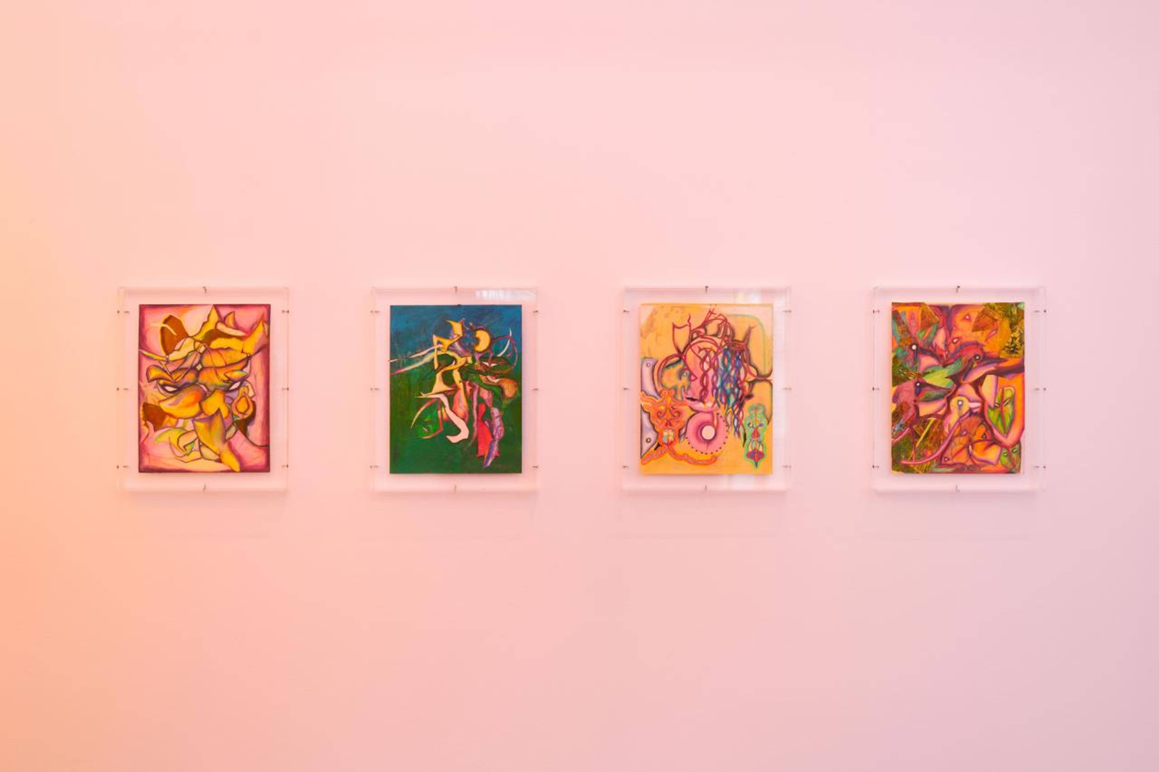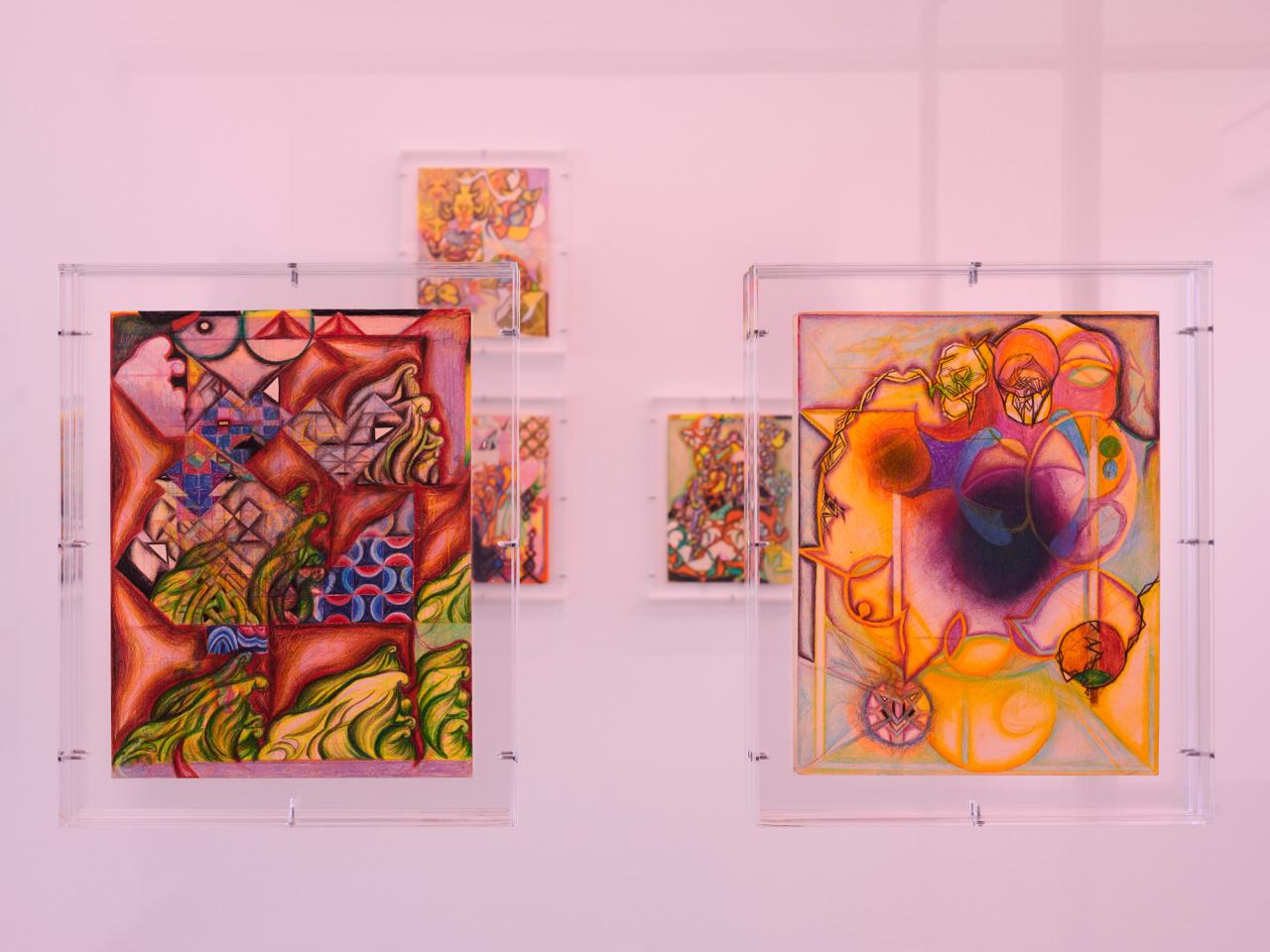 The Hamburg-born artist Kerstin Brätsch subscribed to the Invisible College, a community on Zoom founded by poet and playwright Ariana Reines, from New York City in early 2020, where moving through, working in, and activating the collaborations central to her practice became difficult or outright impossible. Back then, the group focused on reading and discussing the stories and hymns in Inanna: Queen of Heaven and Earth (1983), a collection of ancient texts about the Sumerian goddess translated, annotated, and retold by Diane Wolkstein and Samuel Noah Kramer. As she was in the course, Brätsch worked on a series of drawings with readily available materials during quarantine – colored pencil, graphite, and paper – that, two years later, would come to constitute the “Para Psychics” (2020–22), now on display at the Ludwig Forum in a show curated by Eva Birkenstock.