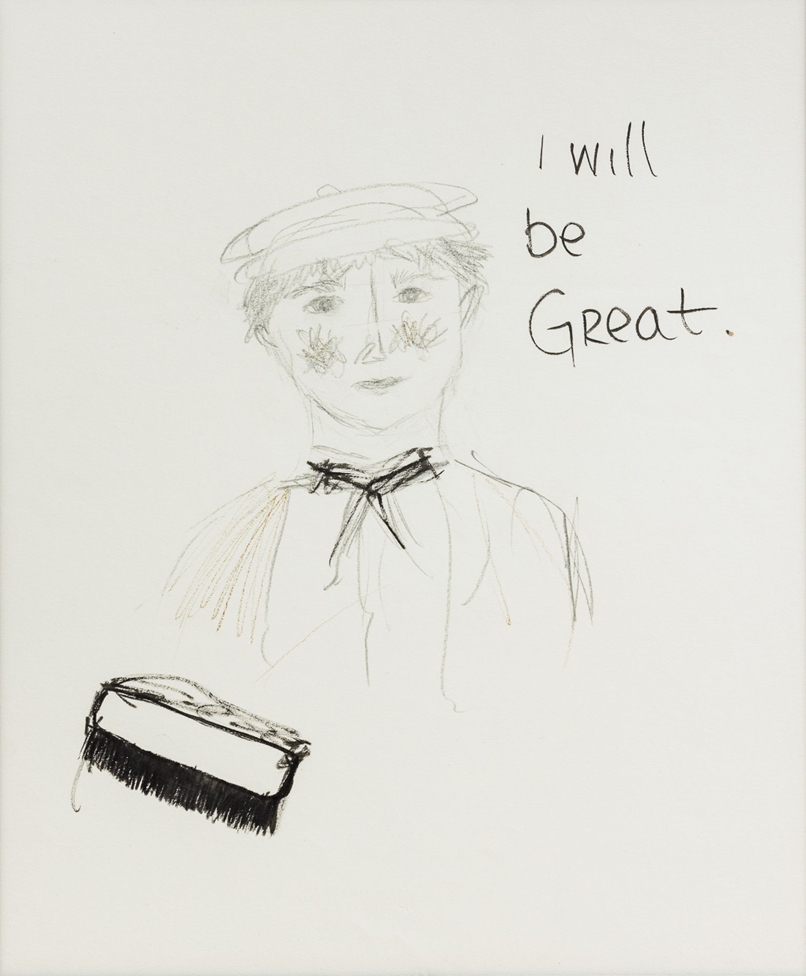 The main work here is a pair of wall-projected videos, one in color and one in grayscale, as well as three tables covered with crumpled black cloth, one of which is part of a sound piece; the others seemingly have no function. The looped audio, a guitar riff by Syd Barrett played lo-fi by Spagnola (*1991) – herself a member of the LA punk outfits P22 and Purity – is captivating, while the installation has something obscure about it. Who is the recurrent child figure? Are they ein Straßenkind (a street kid) or the artist’s son? And why pray tell is this girl dressed like a hippie in 2024?