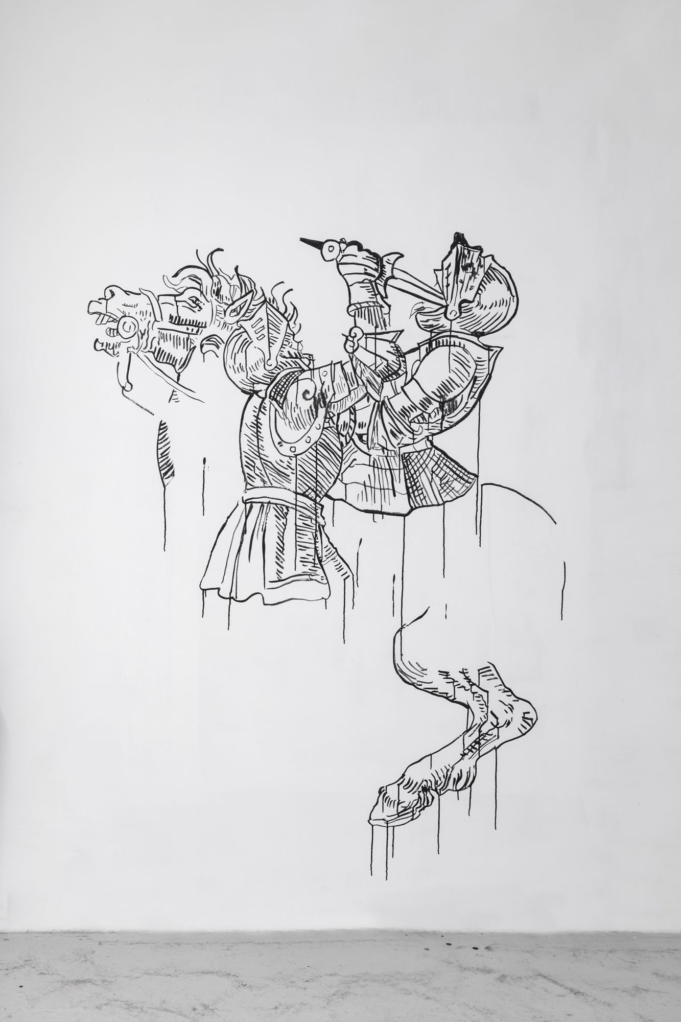Was Albrecht Dürer (1471–1528) the first post-internet artist? Parker Ito (*1986), casting an admiring eye over his use of print as a tool of mass dissemination, sure seems to think so: In 2016, he refigured three master engravings by “the German Leonardo” into photoshopped oil paintings, renaming them Melencolia 2, Me, Death and the Devil, and Me in my Study (all 2016). Using the stylistic trademarks of these works – density of line, non-hierarchical picture planes – Ito also interpolated his self-portrait, a character illustration of a knight with a backwards baseball cap commissioned from the comic artist Paul Pope, as though applying Dürer as a filter to his own life.
