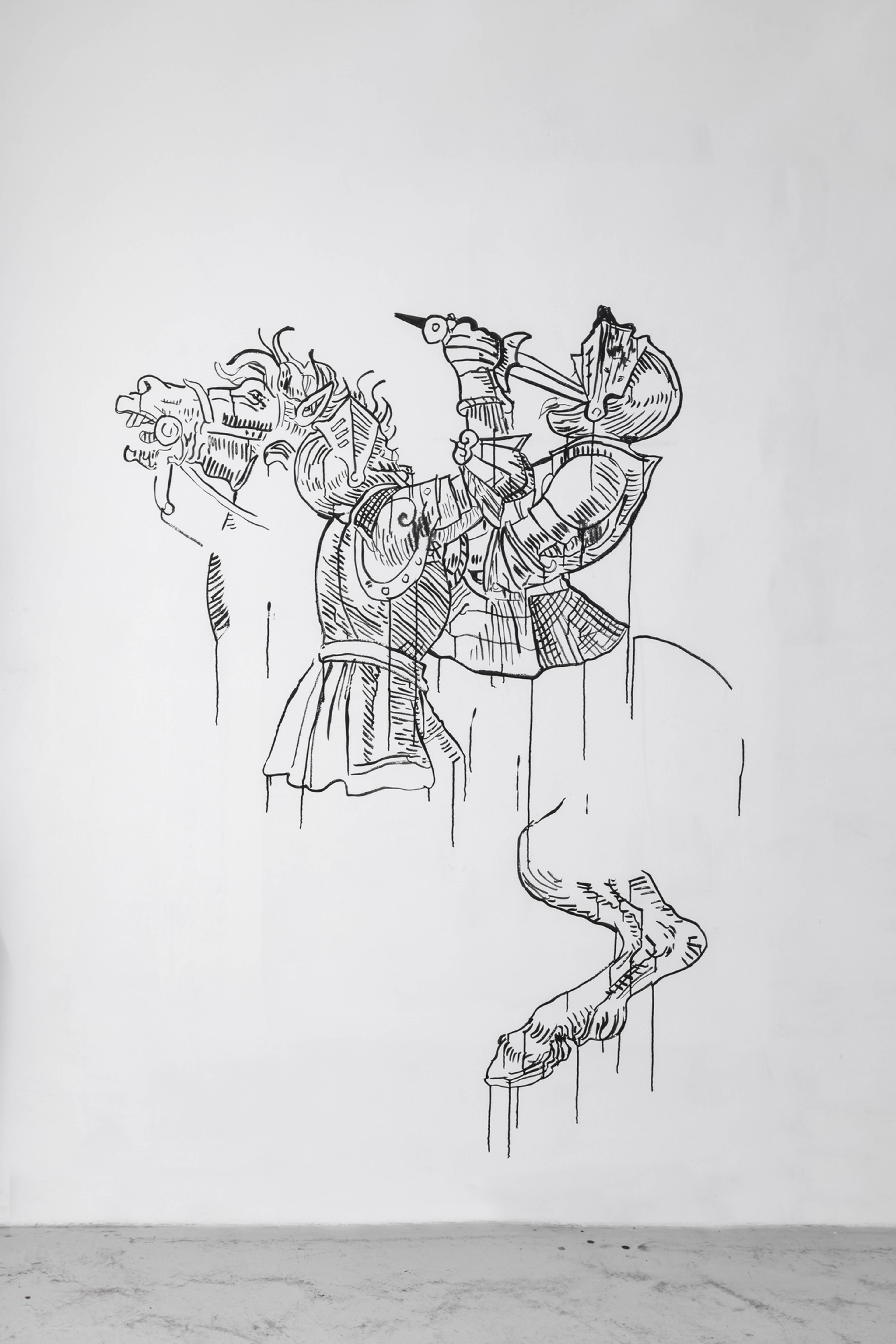 Was Albrecht Dürer (1471–1528) the first post-internet artist? Parker Ito (*1986), casting an admiring eye over his use of print as a tool of mass dissemination, sure seems to think so: In 2016, he refigured three master engravings by “the German Leonardo” into photoshopped oil paintings, renaming them Melencolia 2, Me, Death and the Devil, and Me in my Study (all 2016). Using the stylistic trademarks of these works – density of line, non-hierarchical picture planes – Ito also interpolated his self-portrait, a character illustration of a knight with a backwards baseball cap commissioned from the comic artist Paul Pope, as though applying Dürer as a filter to his own life.