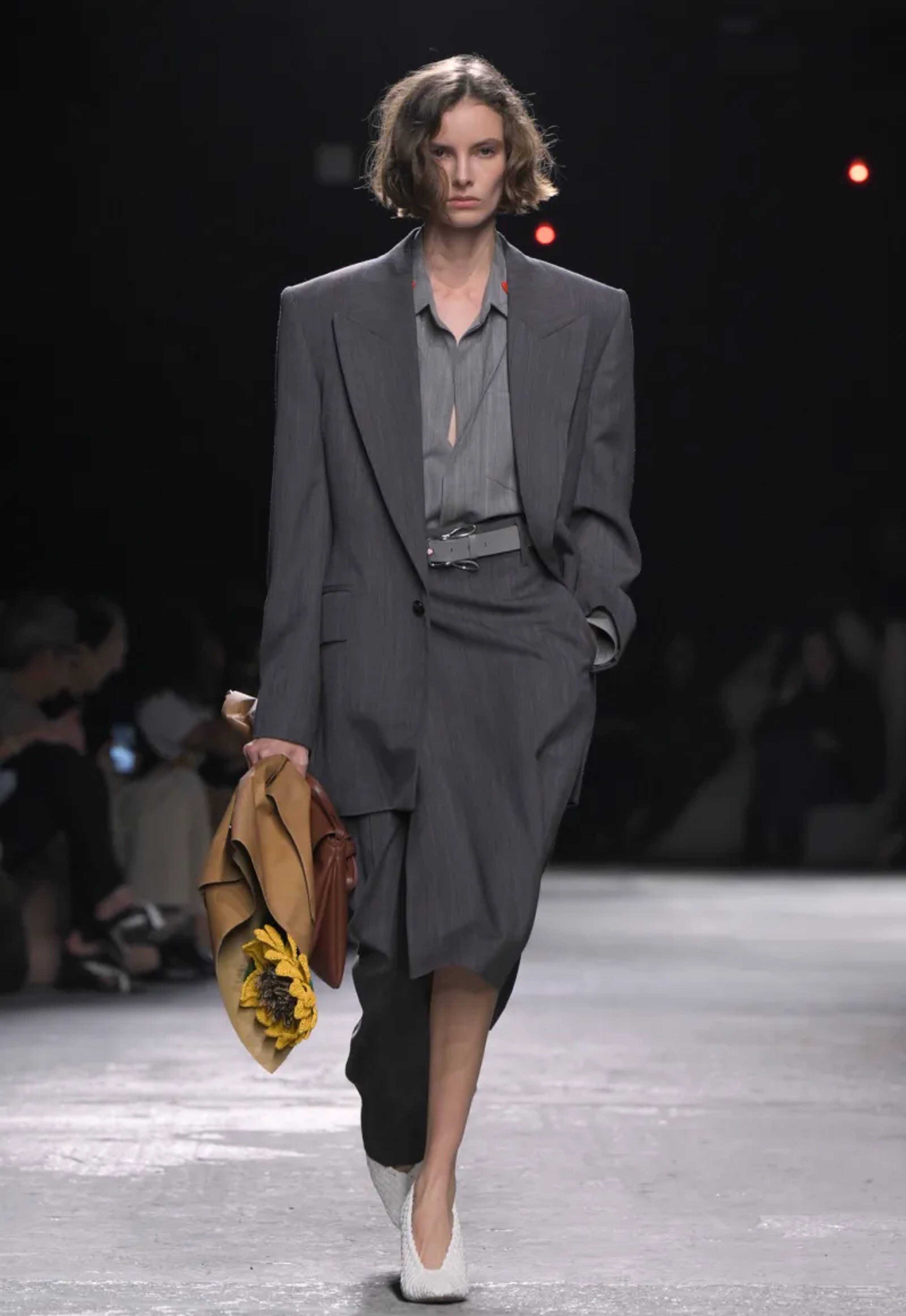 Is it something to do with gender? Litkovska’s show blurb claims to consist of “deconstructed menswear staples put on women’s shoulders.” Who wears the trousers is no longer a gender-bending question, though who wears the skirt still is, and the Spring/Summer 25 shows kept the tension of accepted gender codes in play: Litkovska showed a “man skirt” made from a pair of jeans, while Bottega’s men’s skirt came in macho black leather.