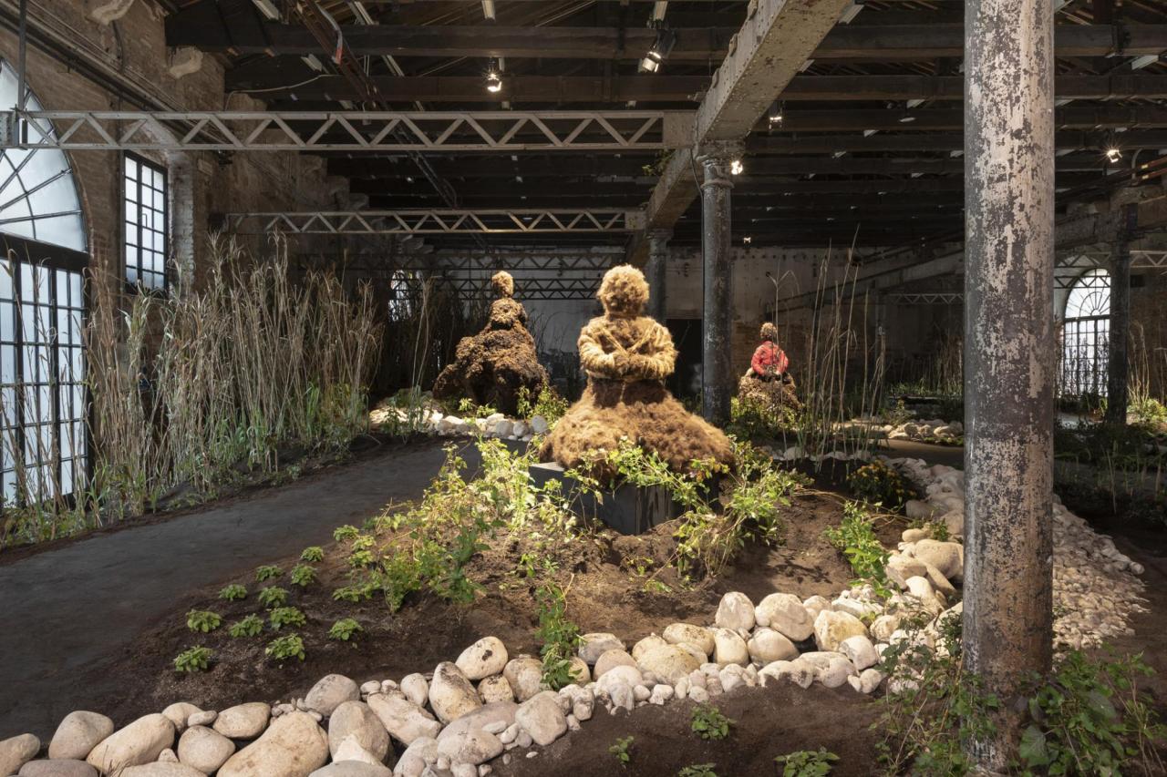 Another work emblematic of Alemani’s point is Zheng Bo’s video Le Sacre du printemps (Tandvärkstallen) (2021), which presents an upside-down image of a forest that has become an object of sexual interest for a group of young men. According to the Italian philosopher Emanuele Coccia, species are constantly changing the world, obliged to engage in dialogue and sign pacts with others. It is important to refer to this theoretical context since “The Milk of Dreams” stages the common challenge of feminism and the ecological struggle: To put an end to systems of domination inherited from the Neolithic era with a program of control which, today, finds its limits between the two infinities, the tiny and the immense, the viral and the global. As a result, Alemani’s exhibition seems to me to be more about the pre-human than the post-human: A kind of positive wave runs through the biennial, that of a possible transformation of bodies and minds. In Alemani’s words, “despite the climate that forged it, this is an optimistic exhibition, which celebrates art and its capacity to create alternative cosmologies and new conditions of existence.” Pre-human rather than post-human, because the exhibition presents a kaleidoscope of positions that contribute to a re-composition of a possible image of humanity through the motif of bodies in search of redefinition: before technology, before the planet, before themselves. One can only regret the low proportion of young artists included in this historical remix or even their lack of relevance at times. Rediscoveries, which dominate the current art market, generally outweigh discoveries. “The Milk of Dreams” succeeds in reconfiguring the software of art and injects all of its energy into it; as for its immediate future, the work remains to be done — no doubt by the likes of Dora Budor, Mire Lee, or Marianna Simnett.
