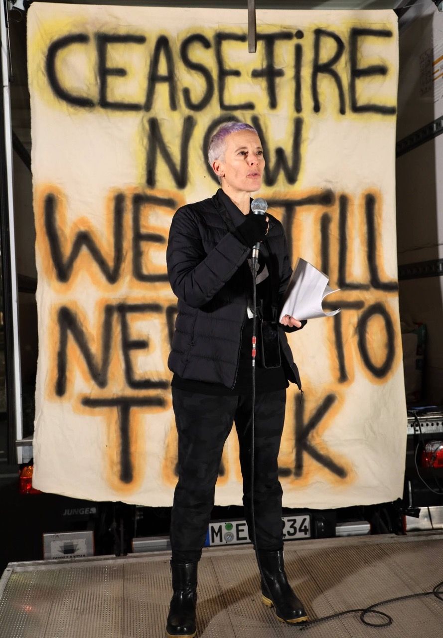 AK: What I mean is that the SPD, the Greens, the FDP, and the CDU/CSU introduced almost identical motions for resolutions in the Bundestag on 7 November to tighten the 2019 BDS resolution. They want to “strengthen the activities already directed against the (anti-Semitic) BDS movement to the effect that a ban on BDS activities or an organizational ban on BDS in Germany will also be examined.” If this development were to prevail, we would find ourselves in a situation that reputable authorities warned of in 2020 – a state boycott of actors and debates that can somehow be linked to BDS. We know that such accusations are easier to assert than to refute. Moreover, we know from our own history how state violence can creep up quietly and then swell into a regime. Things are already happening in Germany that make people in most countries around the world rub their eyes in disbelief.
