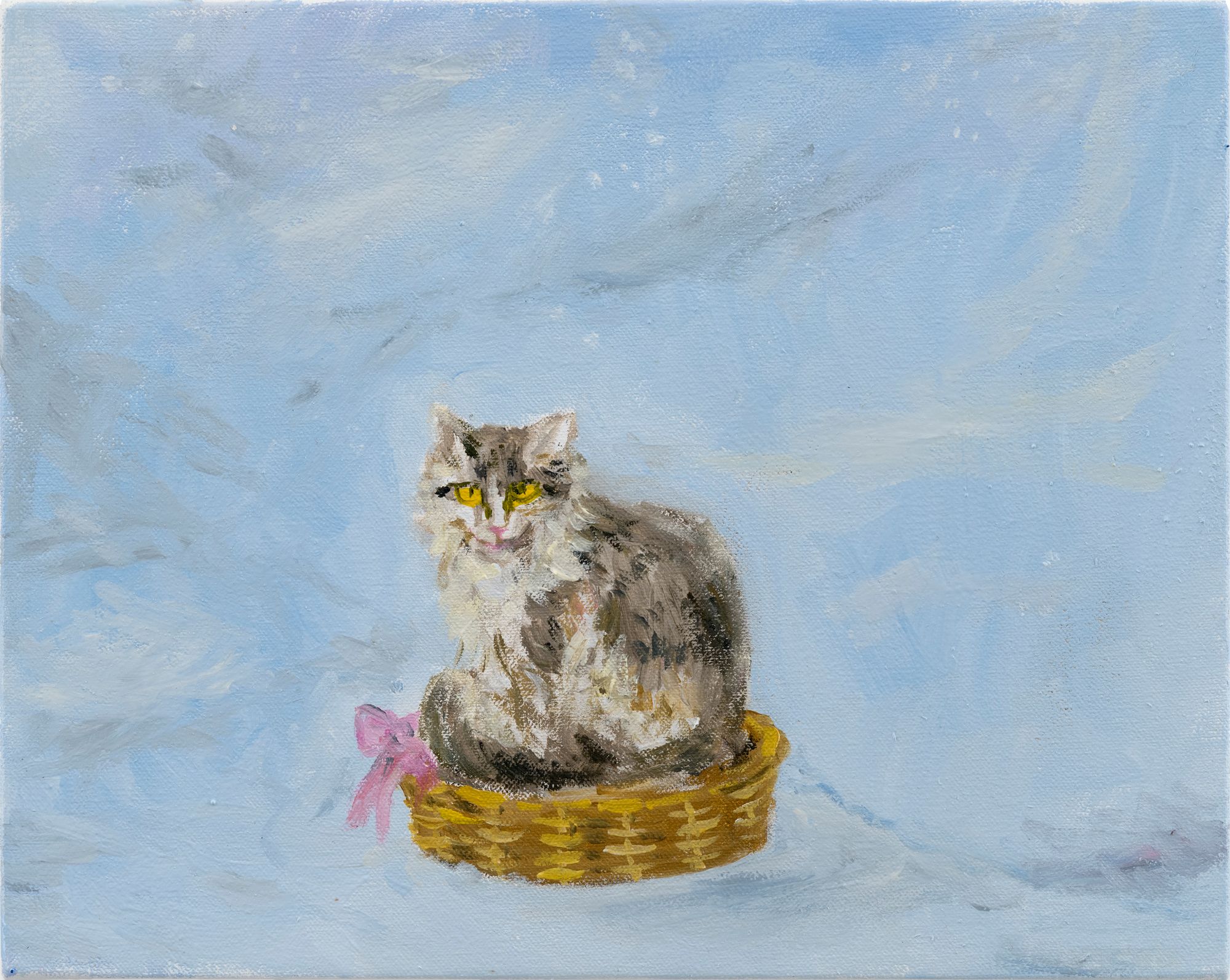 The visitor may be struck by the centrality of transgenic organisms here – Hello Kitty is part girl, part cat, after all. Perhaps this is an admission of sorts: that cuteness is not human, or even that it is opposed to humanity outright. In Isaac Lythgoe’s (*1989) techno tableau When everything is new the pleasures are skin deep (2023), a futuristic Bambi is caught in a whirlwind of energy, scattering a not-quite-organic flower across his face and obscuring his eyes. Ed Fornieles’s (*1983) Fini Season One: Adventures in Symbiotic Love Tyranny (2023) features an almost criminally chère chihuahua with a human voice, and an agenda that recapitulates the charismatic megafauna narrative (in this case, a mini-fauna): If we activate the cuteness center of your brain, you’ll make room for us in your anthropic tyranny. Is it a hopeful message? Cuteness as the criterion of survival? It depends on how cute you think Roko’s Basilisk is.