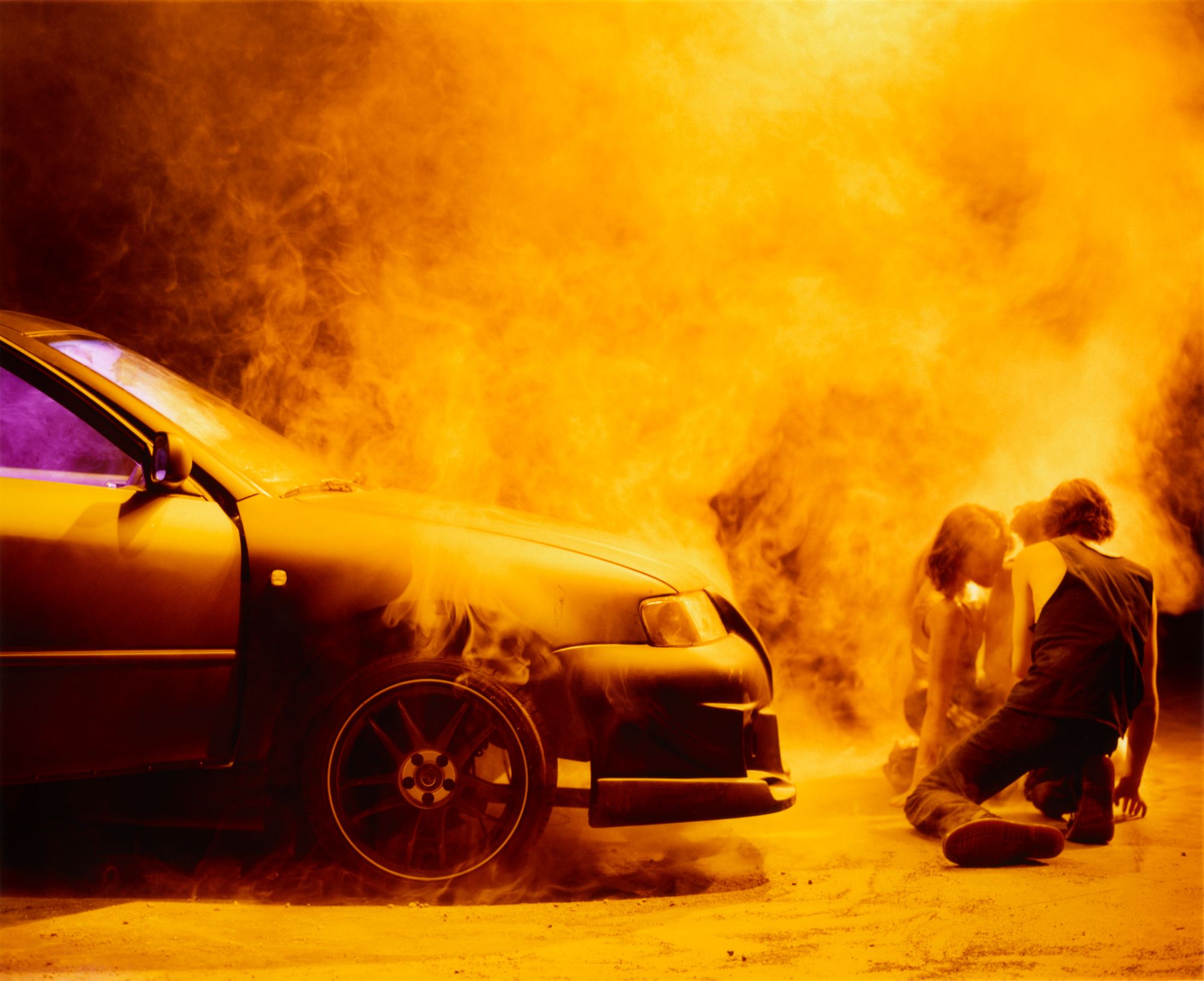 In slow motion, the characters explore a lunar landscape, trying to orient themselves and understand their surroundings. Sudden leaps in time and space are made clear by verbalized flashbacks and compositional lighting. Meanwhile, performer Katia Petrowick slowly dances her way into Clara and Felix’s relationship, alternately playing one of the siblings’ roles in parallel, visualizing their emotions by working herself to exhaustion, and penetrating the car with slow, pelvic movements.