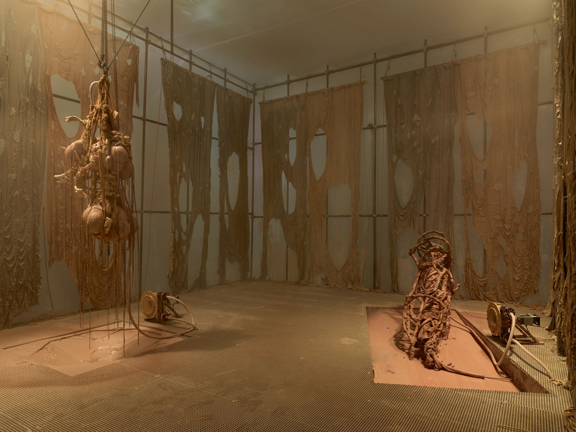 Mire Lee has known depression. She described her doldrums to BOMB like this: “Everything is meaningless, and you are the only holder of this truth.” This is one way to think about Lee’s throbbing, gristly sculptures – lumps of silicone, pools of brown glycerin cycling through tubes and electric pumps, churning and dripping abattoirs of organ-like forms. From this sense of trapped, terminal interiority, the ineffable congeals and can be extracted like a cartoonish tumor, plopped down or strung up for our glazed inspection. Oh, there it is. My feeling. My guts.