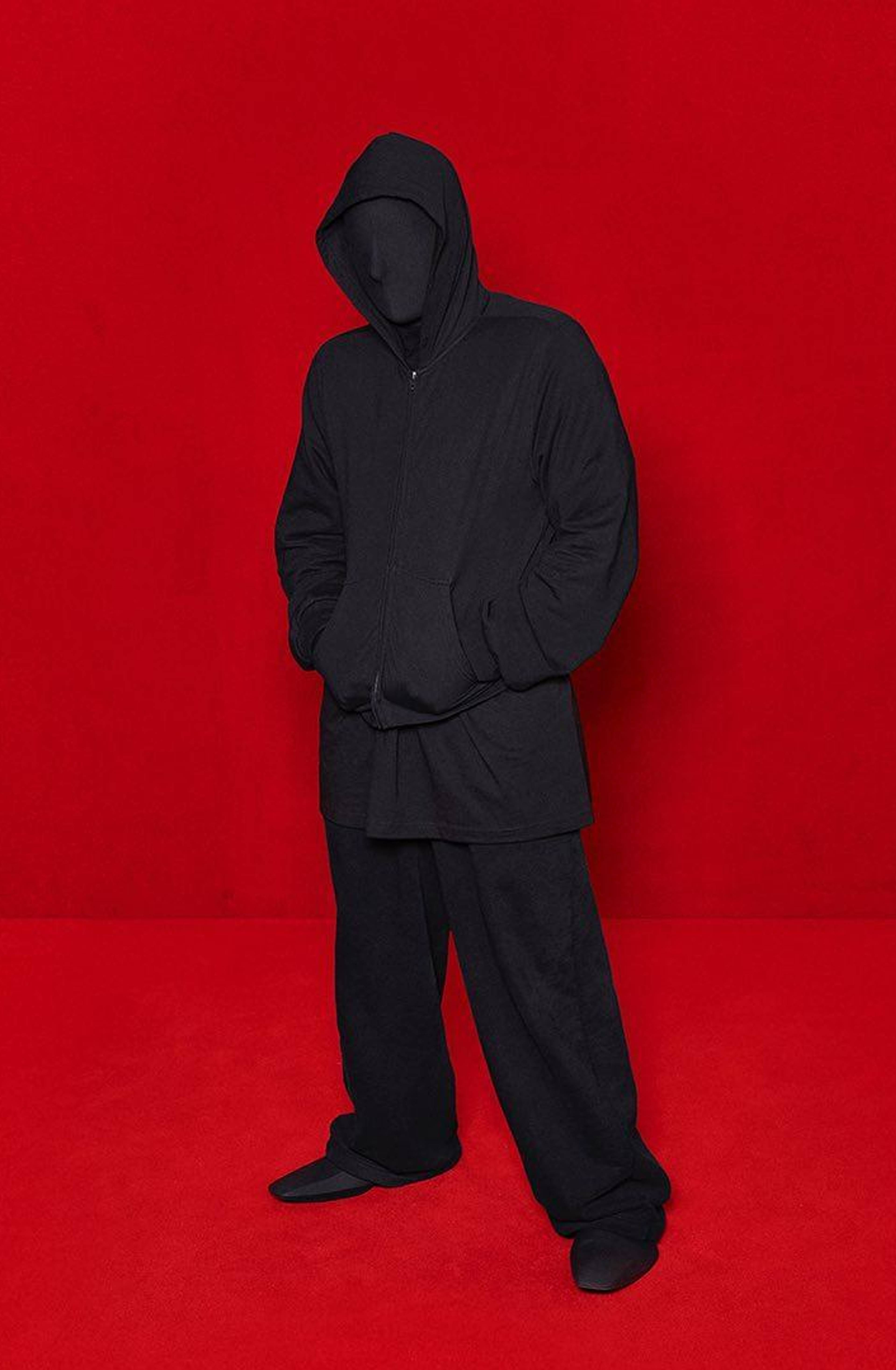 For many seasons, Balenciaga’s Instagram was a roll of photos solicited from alternative influencers, from pale, sickly artists and dour, misshapen scene kids, eager to make themselves into advertisements for around $500 a post; but on July 1st this year, the brand deleted everything, unmade itself, and turned to a blank page. By late July, Kanye West, under Gvasalia’s creative direction, was wandering the stands of Atlanta’s football stadium in a series of masks. And last month, September, Gvasalia accompanied the rapper’s estranged wife, Kim, to the Met Ball in matching all-black outfits and body stockings that obscured their faces completely. Demna and Kim, this century’s most influential and effective forces of branding and self-branding respectively, are now involved in the destruction of identity. Kim and Kanye are divorcing one another, but also themselves. And Demna’s black-hooded, faceless penitent getup from the masked ball also closed Balenciaga’s Spring ’22 show, and was the first picture posted on its wiped-clean Instagram.